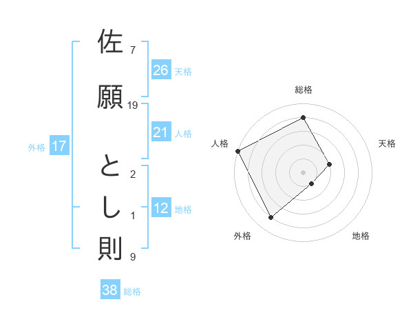 佐願 とし則さんを姓名の画数から五運を鑑定