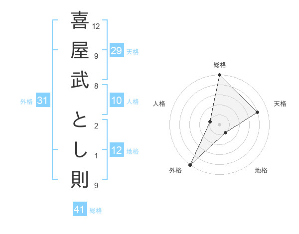 喜屋武 とし則さんを姓名の画数から五運を鑑定