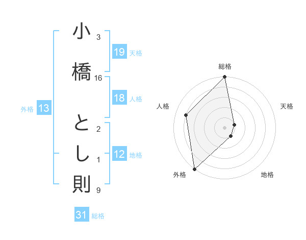 小橋 とし則さんを姓名の画数から五運を鑑定