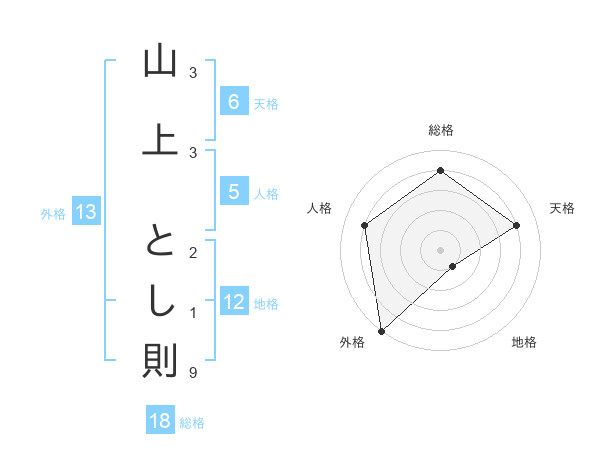 山上 とし則さんの外格は13画の5点!