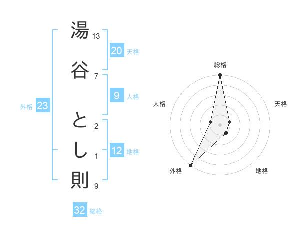 湯谷 とし則さんを姓名の画数から五運を鑑定
