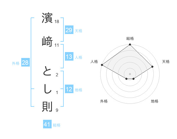 濱﨑 とし則さんを姓名の画数から五運を鑑定