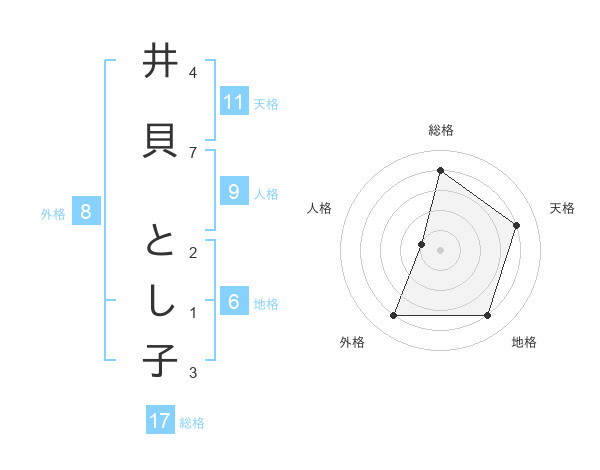 井貝 とし子さんを姓名の画数から五運を鑑定