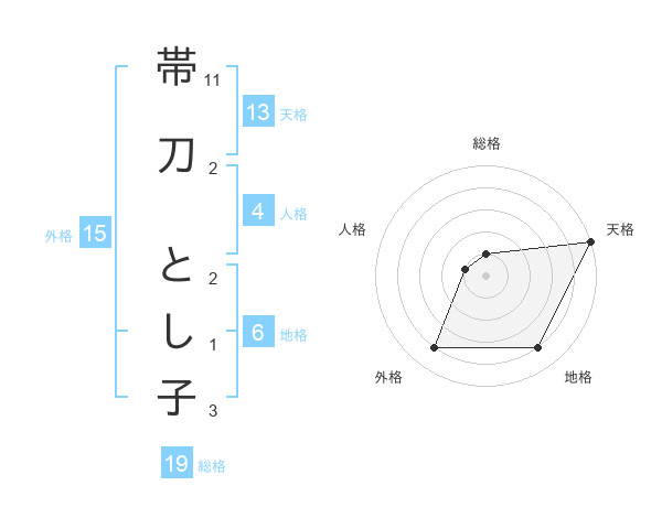 帯刀 とし子さんを姓名の画数から五運を鑑定