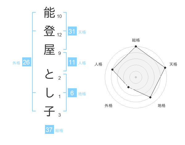 能登屋 とし子さんを姓名の画数から五運を鑑定