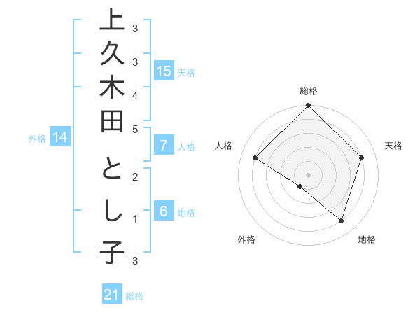 上久木田 とし子さんを姓名の画数から五運を鑑定
