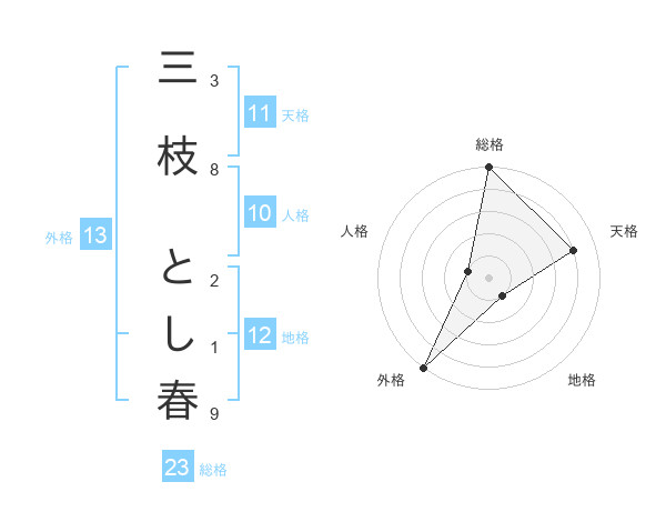 三枝 とし春さんを姓名の画数から五運を鑑定