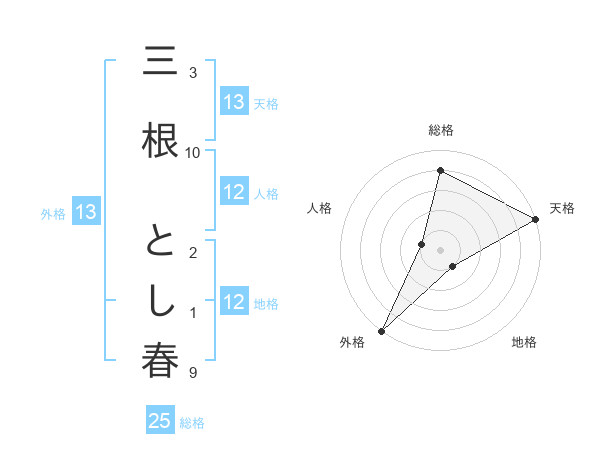 三根 とし春さんの外格は13画の5点!