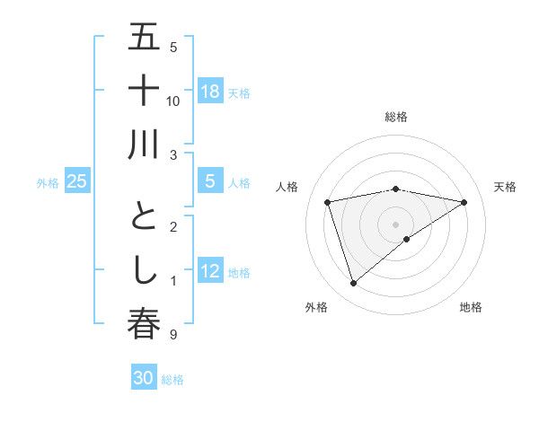 五十川 とし春さんを姓名の画数から五運を鑑定