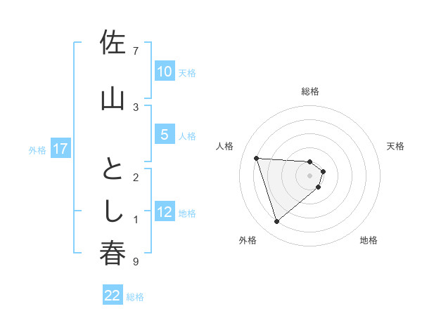佐山 とし春さんを姓名の画数から五運を鑑定