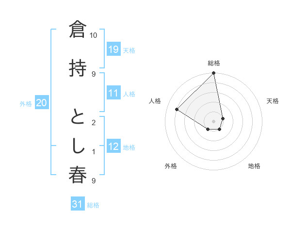 倉持 とし春さんを姓名の画数から五運を鑑定