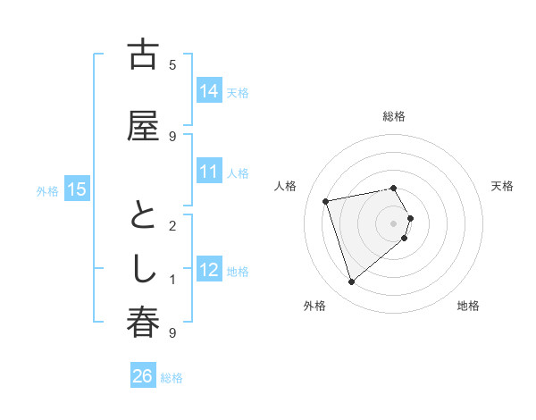 古屋 とし春さんを姓名の画数から五運を鑑定