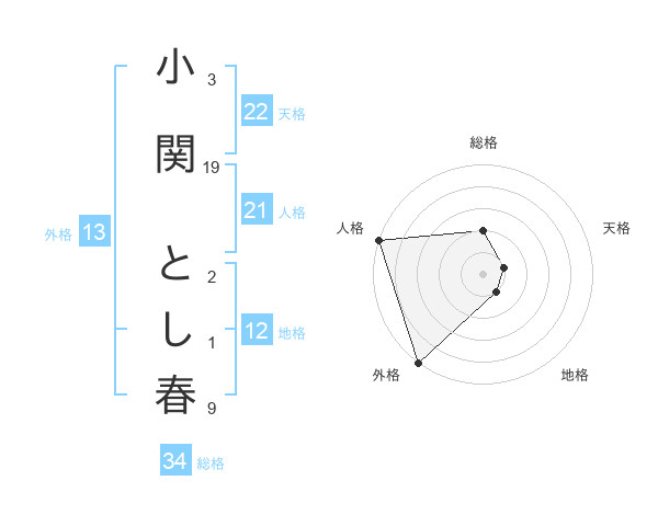 小関 とし春さんの外格は13画の5点!