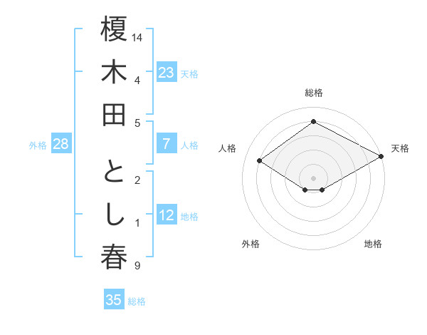 榎木田 とし春さんを姓名の画数から五運を鑑定