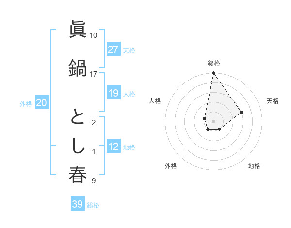 眞鍋 とし春さんを姓名の画数から五運を鑑定