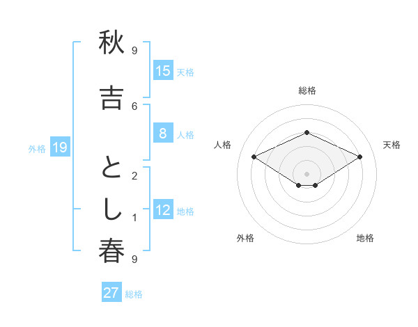秋吉 とし春さんを姓名の画数から五運を鑑定