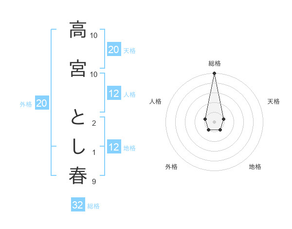 高宮 とし春さんを姓名の画数から五運を鑑定