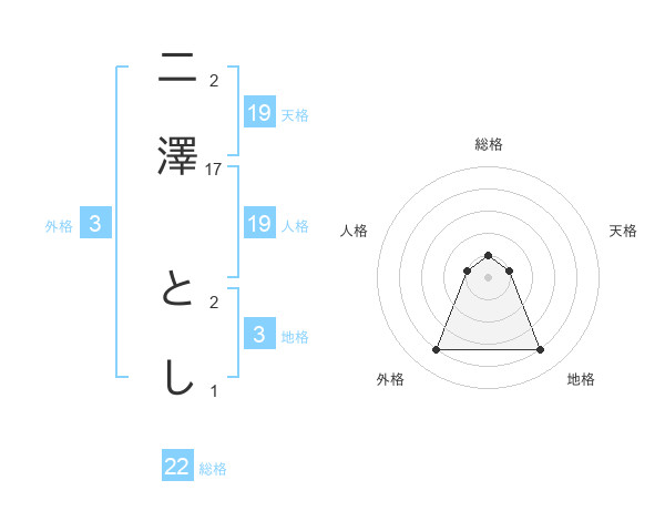 二澤 としさんの天格は19画の1点!