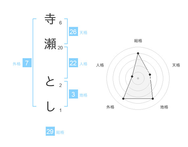 寺瀬 としさんの総格は29画の4点!