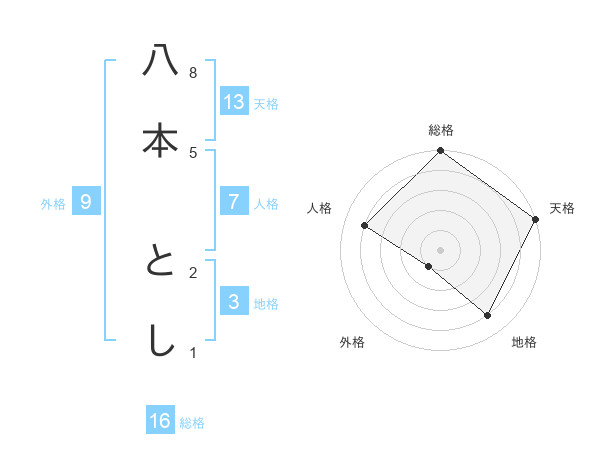 八本 としさんの天格は13画の5点!