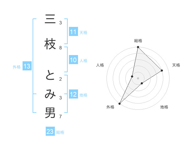 三枝 とみ男さんを姓名の画数から五運を鑑定