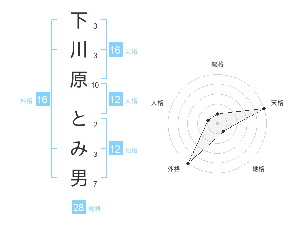 下川原 とみ男さんを姓名の画数から五運を鑑定