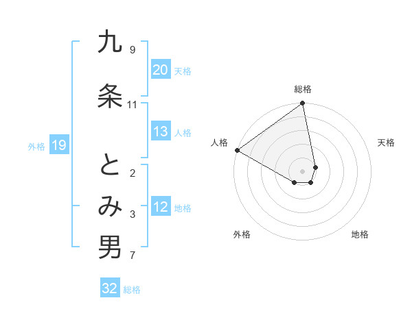 九条 とみ男さんを姓名の画数から五運を鑑定
