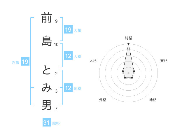 前島 とみ男さんを姓名の画数から五運を鑑定