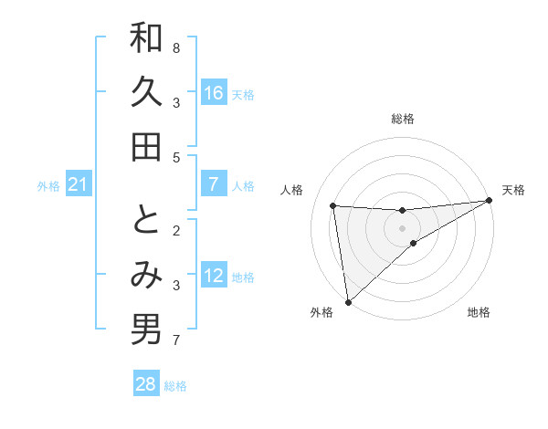 和久田 とみ男さんを姓名の画数から五運を鑑定