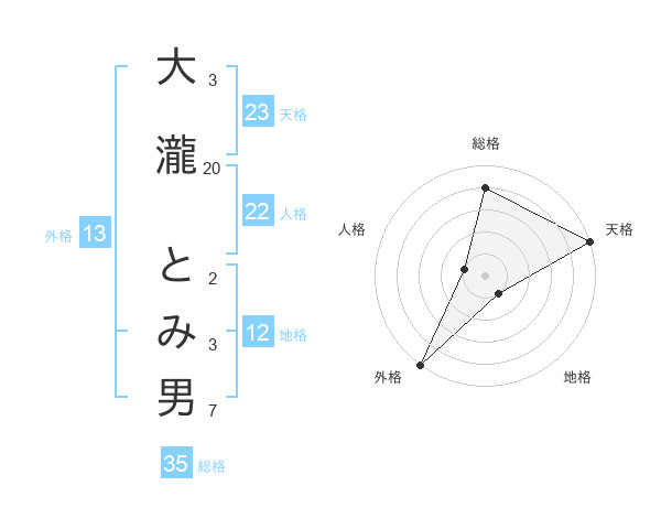 大瀧 とみ男さんを姓名の画数から五運を鑑定