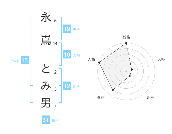 永嶌 とみ男さんの総格は31画の5点