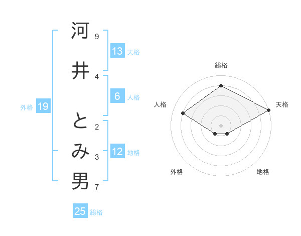 河井 とみ男さんを姓名の画数から五運を鑑定