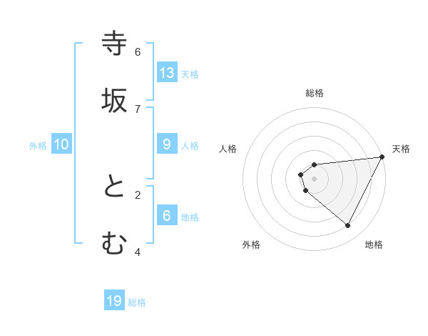 寺坂 とむさんを姓名の画数から五運を鑑定