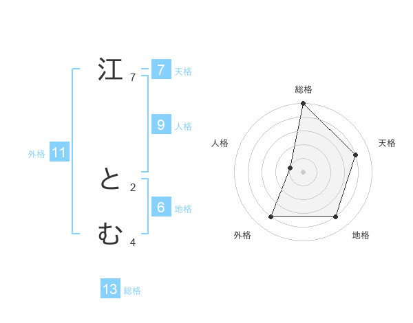 江 とむさんの総格は13画の5点!
