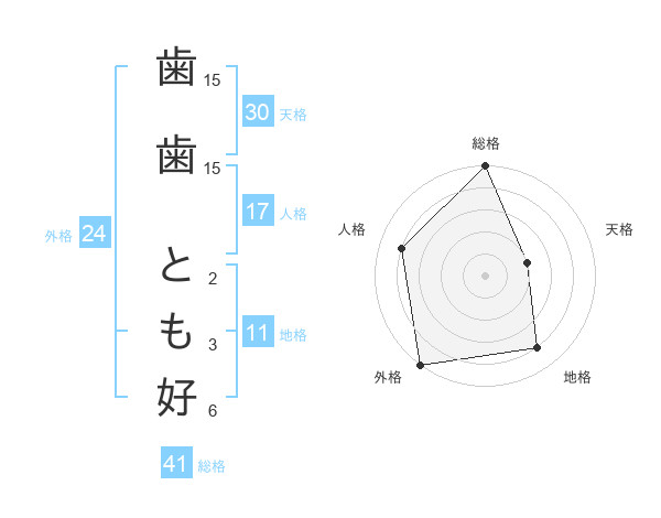 歯歯 とも好さんの総格は41画の5点!