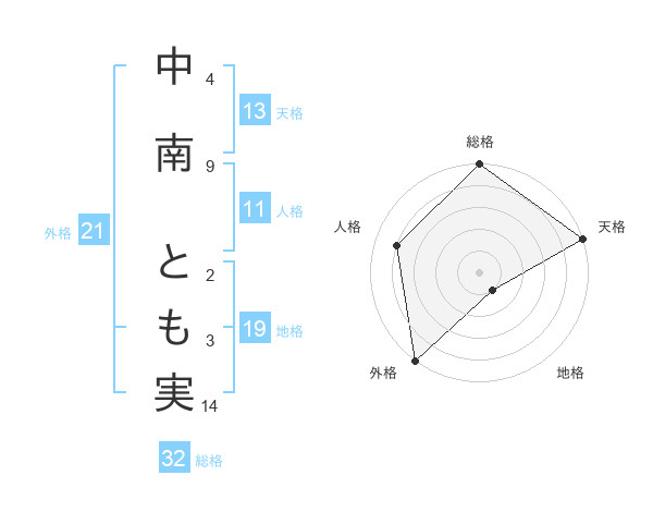中南 とも実さんの天格は13画の5点!