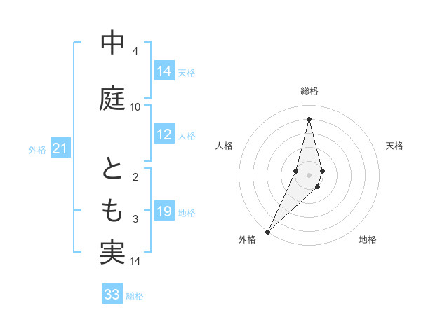 中庭 とも実さんを姓名の画数から五運を鑑定