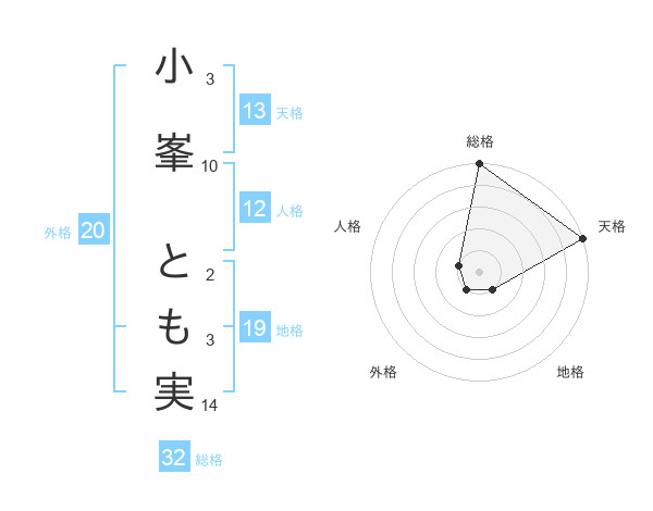 小峯 とも実さんを姓名の画数から五運を鑑定
