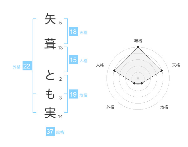 矢葺 とも実さんを姓名の画数から五運を鑑定