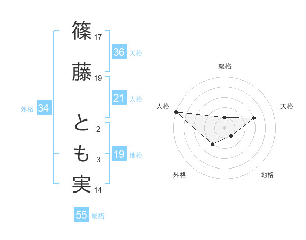 篠藤 とも実さんを姓名の画数から五運を鑑定