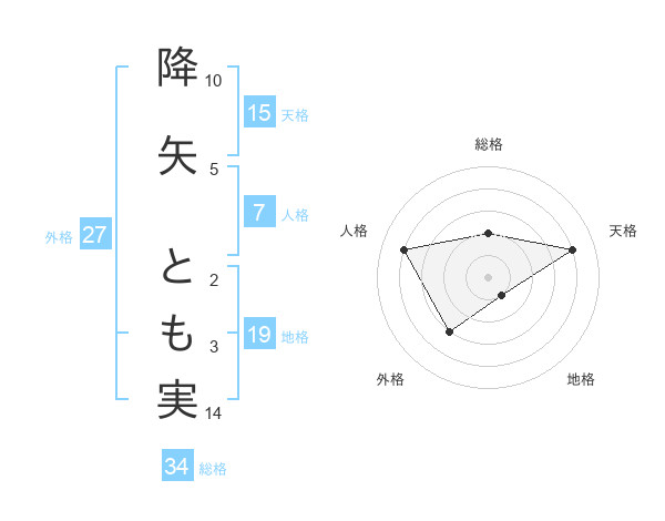 降矢 とも実さんを姓名の画数から五運を鑑定