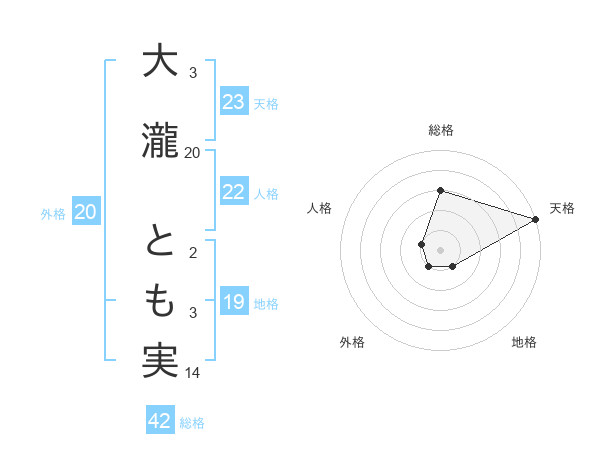 大瀧 とも実さんを姓名の画数から五運を鑑定