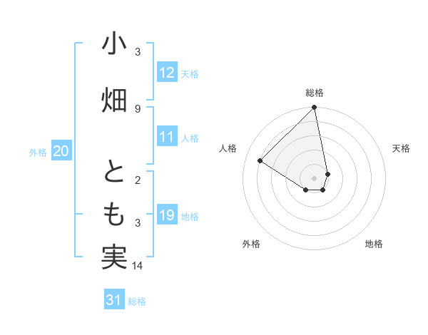 小畑 とも実さんの総格は31画の5点!