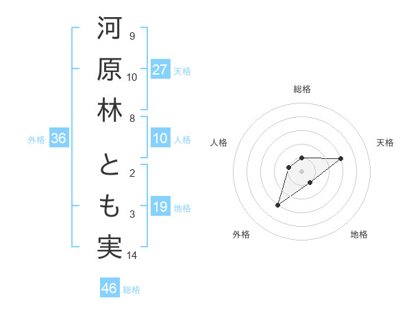 河原林 とも実さんを姓名の画数から五運を鑑定