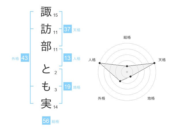 諏訪部 とも実さんを姓名の画数から五運を鑑定