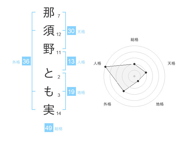 那須野 とも実さんを姓名の画数から五運を鑑定