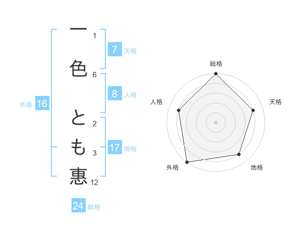 一色 とも惠さんの外格は16画の5点!