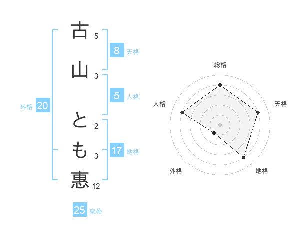 古山 とも惠さんを姓名の画数から五運を鑑定