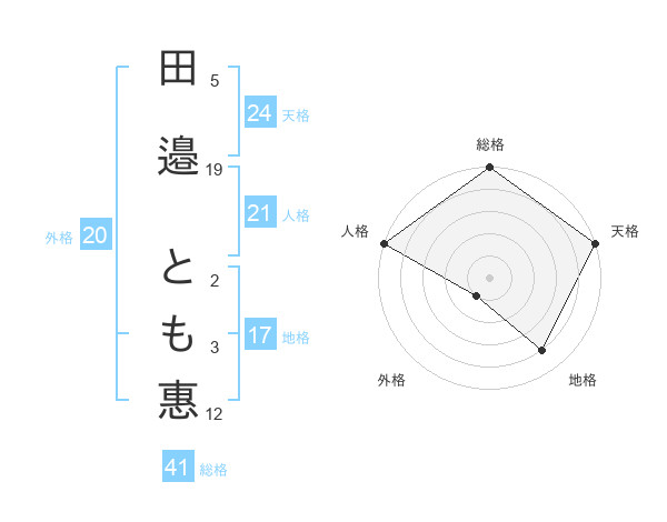 田邉 とも惠さんを姓名の画数から五運を鑑定