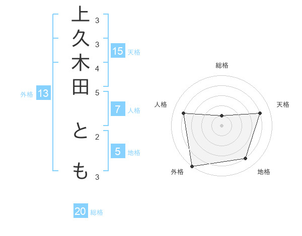 上久木田 ともさんを姓名の画数から五運を鑑定